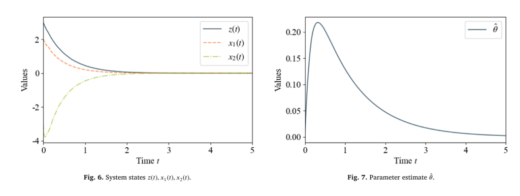 \[ \upsilon = q_n^{*}(x, \hat{\theta}) = -\beta R(x, \hat{\theta}) – \frac{1}{\hbar n}, \quad \beta \ge 2 \]with adaptive parameter update: