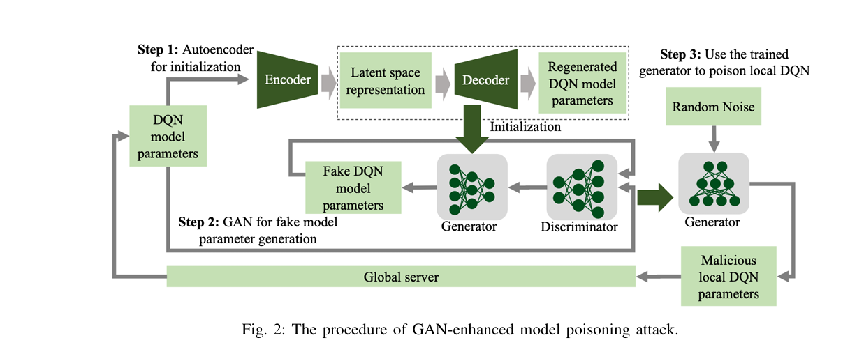 • Training Phase: The attacker collects global model updates and trains a GAN to mimic the distribution of real model parameters.