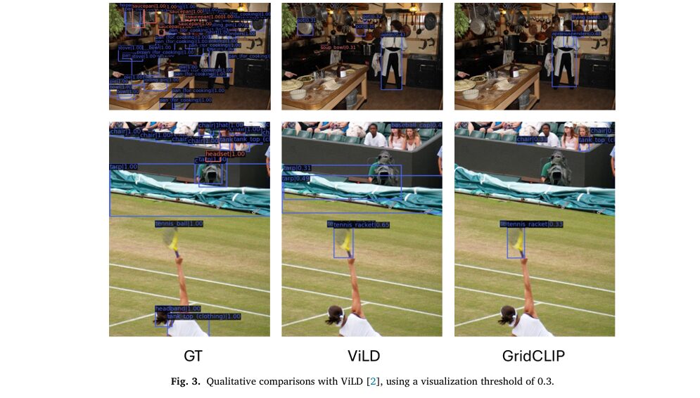 - No pre-computation: Unlike ViLD, GridCLIP doesn’t need to pre-compute region embeddings.