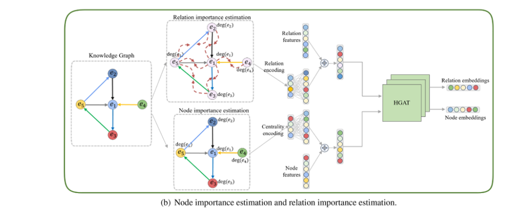 \[ H_{r_i} = H_{r_i}^{\text{init}} + \sum_{t_i \in T_{r_i}} \left[ \deg\!\left(h_{t_i}\right) + \deg\!\left(t_{t_i}\right) – A \left| \deg\!\left(h_{t_i}\right) – \deg\!\left(t_{t_i}\right) \right| \right] \]The penalty term A∣deg(hti)−deg(tti)∣ addresses a subtle but important issue: misleading importance attribution. When one entity in a relation is highly connected (a hub) and the other is isolated, raw degree summation would overestimate the relation’s importance. The penalty term downweights such unbalanced connections, ensuring relations between similarly significant entities receive appropriate attention.