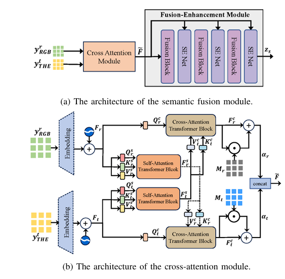 \[ x_r’ = \text{ConvertRGBtoGray}(x_r) \] \[ x_t’ = \text{ExpandTo3Channels}(x_t) \] \[ y_t^{\text{RGB}} = f_{\text{RGB}}(x_t’; \theta_r) \] \[ y_r^{\text{THE}} = f_{\text{THE}}(x_r’; \theta_t) \]These cross-modal outputs serve as “semantic hints” or prompts, guiding the encoders to learn complementary features rather than redundant ones.