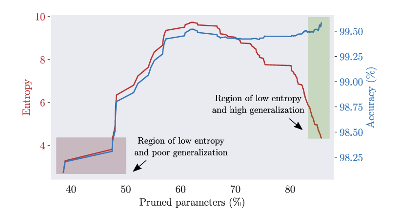 - Entropy reduced by 60% compared to unpruned models