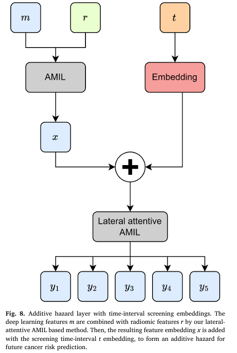 $$P(\text{cancer} = T|x) = B(AMIL(m,r)) + \sum_{i=1}^{T} H_i(AMIL(m,r) + e(t))$$