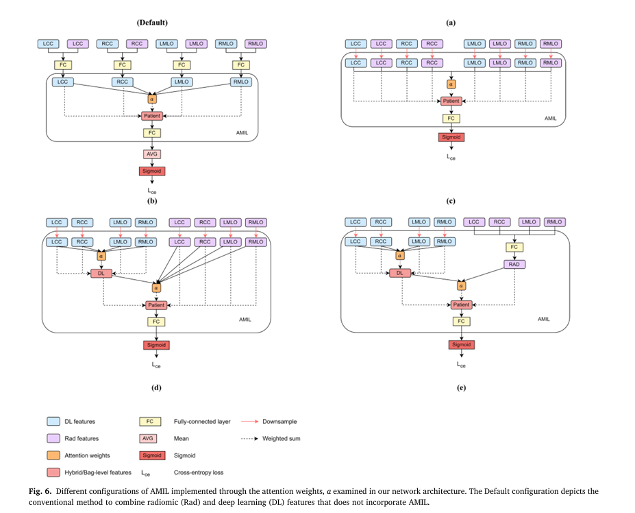 - AMIL(m,r) combines deep learning features (m) and radiomic features (r)